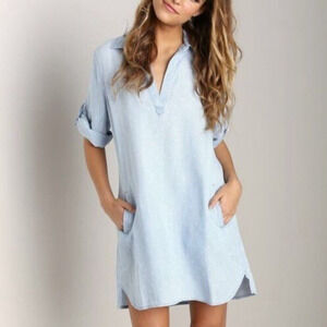 Cloth & Stone Dot Denim Chambray Tunic Top Faded Mini Shirt Dress Size Medium