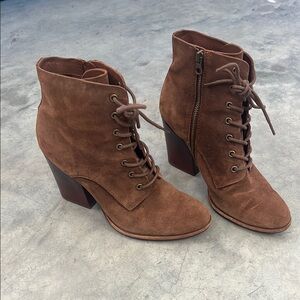 Great pre owned condition- slight wear on suede and heel. See pics.