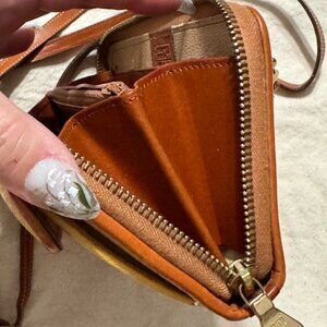 • Zippered interior with card slots and coin space