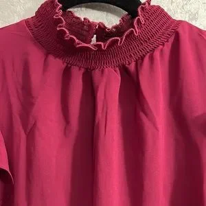 NEW! 1.State Chiffon Flutter Short Sleeve Smocked Mock Neck Blouse Plum Fairy M