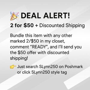 Bundle this item with any other marked 2/$50 in my closet, comment "READY", and I’ll send you the $50 offer with discounted shipping!