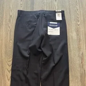 NWT Haggar Mens Dress Pants Straight Fit All Day Comfort Stretch Black Sz 32x32