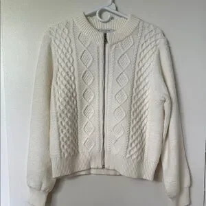 Ann Taylor Cream Cardigan with Cable Knit and Ribbed Cuffs