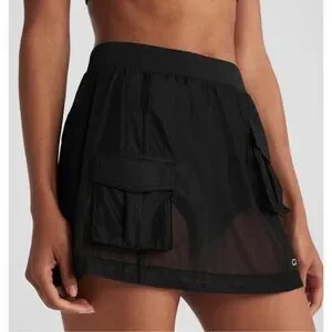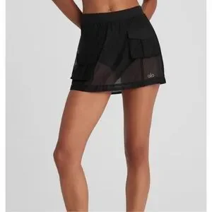 Stylish black mini skirt. Features side pocket. Perfect for active wear.