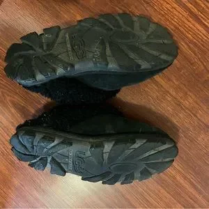 Cozy black UGG shoes. Soft and warm interior. Perfect for comfort.