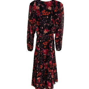 Slate & Willow Dress Size XS Black and Red Floral Midi Wrap Long Sleeve $250msrp