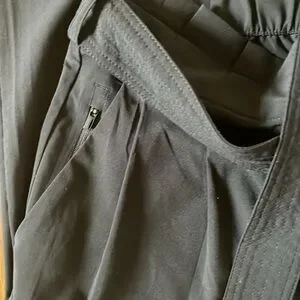 Beautiful and stylish, super lightweight black pants by Athleta size 4 with paper bag waist. They measure 15 inches across the waistband with a 12 inch rise and a 28 inch inseam. Pleated front pull on pants with self belt.