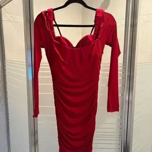 Oh Polly Red Sweetheart Long Sleeve Bodycon Dress