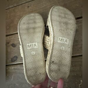 Experience effortless style with MIA's tan woven slide sandals, featuring a chic criss-cross design. These sandals offer a comfortable flat sole, perfect for casual summer outings. The woven texture adds a touch of elegance to your warm-weather wardrobe.