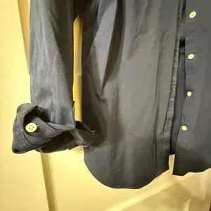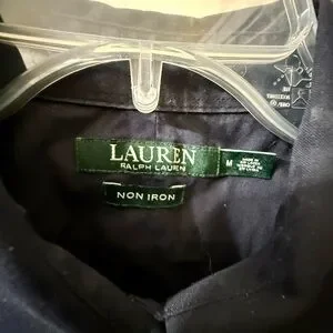 Elegant dark navy shirt by Lauren Ralph Lauren. Non-iron fabric for easy care. Classic casual or dress wear.