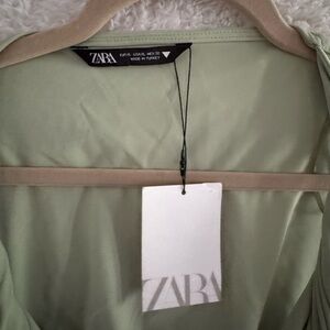 NWT Zara Light Green Ruched V-Neck Long Dress
