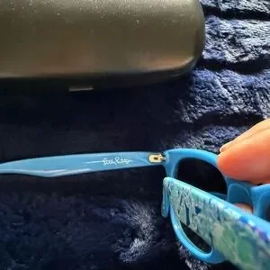 Lilly Pulitzer blue patterned sunglasses with a protective case. Polarized. No scratches. Only worn a couple times by my daughter. I would say like new!
