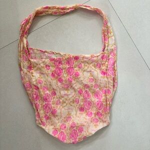 Free People Pink and Cream Floral Cotton Tote Shoulder Bag