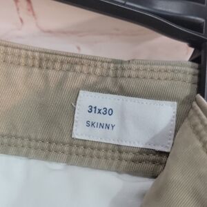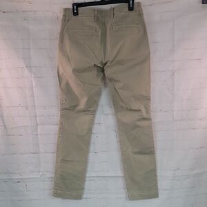 Experience the timeless appeal of GAP's tan chinos, crafted from a smooth cotton-blend fabric. These versatile pants offer a straight leg cut, making them ideal for both casual and business casual settings. Enjoy the perfect blend of comfort and style with this classic wardrobe staple.