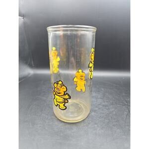 This collectible Hansen Associates Muppet Babies jelly jar drinking glass features Fozzy Bear and snowflakes design. The glass is an original piece from 1989 and has not been modified. It is perfect for fans of Jim Henson's work and collectors of coffee and tea merchandise. The glass is multi-colored and showcases the Muppet Babies characters in a fun and unique way. It is a great addition to any collection and perfect for display.
