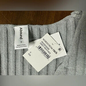 This is a listing for a preowned tags still attached Abound Nordstrom Grey Heather Ribbed Knit V-Neck Cropped Sweater Size Small NWT. Excellent condition, approximate measurements in photos. Please see all photos for details as they are part of the description.