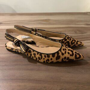 Slingback pointed toe flats in leopard cow hair with bow detail. Excellent used condition, only worn once indoors. From a pet-free and smoke-free home.