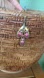 This is a pre-owned gold-tone necklace featuring a double chain with a decorative pendant. The pendant has a floral design with embedded pink and clear rhinestones. The necklace measures approximately 15 inches in length. There are no visible brand markings. The metal shows slight signs of wear, consistent with age.