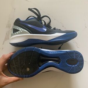 Black and blue Nike court shoes. Size 9.5. Perfect for volleyball or basketball players. Worn for only a few preseason games in attempt to break them in.