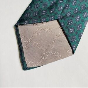 Christian Dior Hunter Green Geometric Pattern Vintage Necktie All Silk