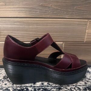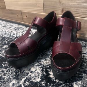 🤩 Rare Dr. Martens Vintage Leather Oxblood Burgundy Quad Platform Sandals Shoes