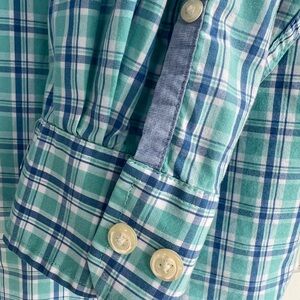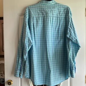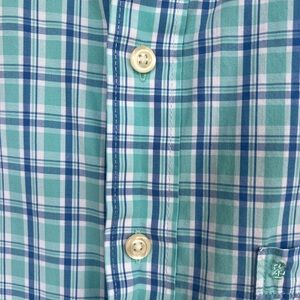 This Izod shirt combines a classic button-down style with a vibrant blue and green color scheme, perfect for casual outings. Made from lightweight fabric, it ensures comfort and breathability throughout the day. Its timeless design makes it a versatile addition to any wardrobe.