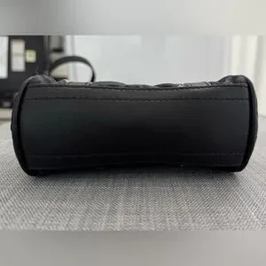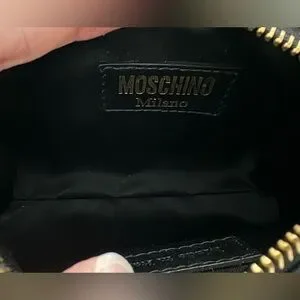 You are purchasing an authentic Moschino mini crossbody bag, with teddy print and quilted. I am original owner and have used it less then ten times. Bag is mostly in great shape except some scuffs on the hardware. About 6 inches at the base, 4.5 inches tall, and 3 inches wide at the base. This is not meant for big phones! Comes with dust bag and original tag. From non smoking home. Thanks for looking!