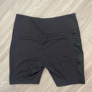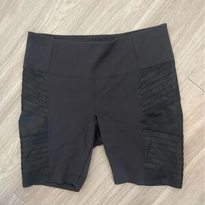 Athleta Delancey gleam moto biker shorts with faux leather on sides in black