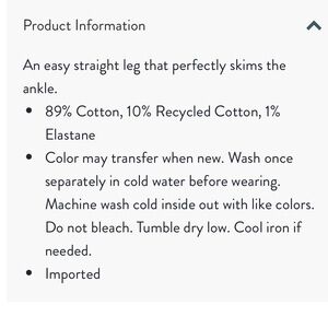 89% Cotton, 10% Recycled Cotton, 1% Elastane