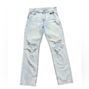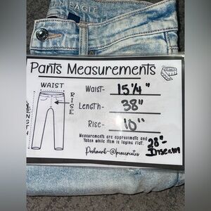 Very trendy American Eagle Stretch Super High-Rise Ankle Straight jeans in great, gently used, condition. Only worn 1 time. No stains or damage. Come from a smoke and pet free home. Size 2 regular. See measurements in photos.