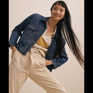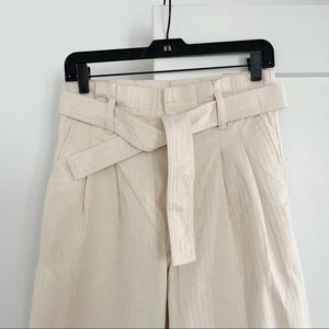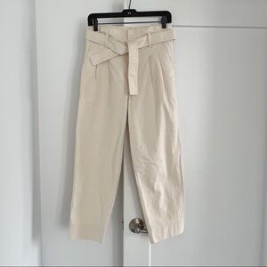 Crafted from fabric woven with a herringbone pattern, these tapered pants are the ultimate warm-weather style. The pleated paper-bag waist is made to pair with a tucked-in tee or tank.