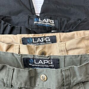 Bundle of preowned kids LA Police Gear tactical cargo pants from a smoke-free home. Features an adjustable waistband, 2 cargo pockets, 2 side pockets, and 2 back pockets.