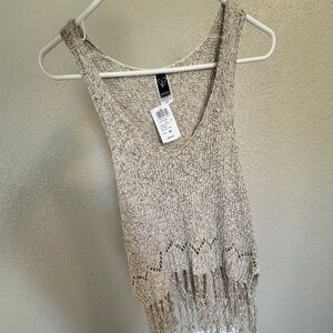 Windsor XS Knit Fringe Tank Top Sweater Natural Beige Boho NWT $34.90