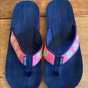 Tidewater Pink & Green Seaturtle flip flops