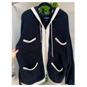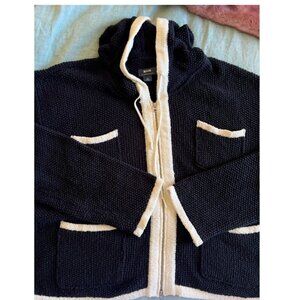 Cute black and white sweater with pockets in a chunky knit. Lightly worn in excellent condition with working zipper. No strains or flaws, from a smoke and pet-free household. See screenshots of product details for fabric and sizing.