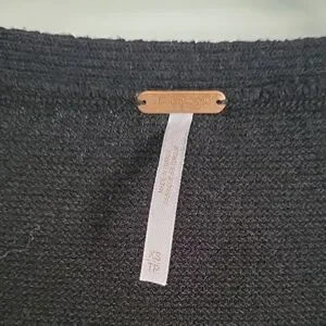 Chic black sweater with a textured design. Ideal for layering. Crossed cutout front and high side slits make this a great standout fashion piece while being comfy! In great condition.