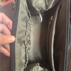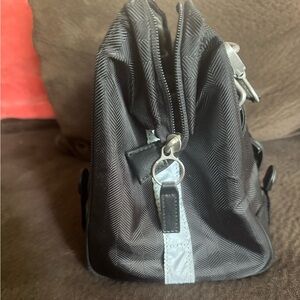 New Po Campo bike bag in black. It has straps on the bottom to attach it to your bike rack as well as a shoulder strap that tucks into the side of the bag to use it as a purse when you get to your destination.