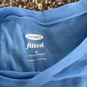 This fitted t-shirt from Old Navy features a sleek design with short sleeves and a classic crew neckline. Made from a soft cotton blend, it offers a comfortable fit perfect for everyday wear. The solid blue color adds a touch of simplicity and style to your wardrobe.