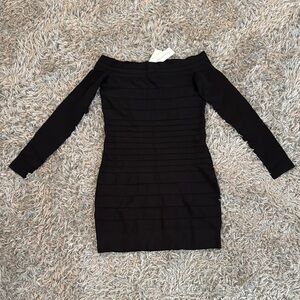 French Connection Black Bodycon Bandage Long Sleeve Dress