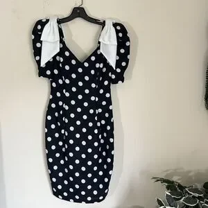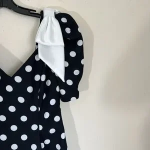 VTG Late Edition Pin Up Polka Dot Dress Black White Rockabilly Sweetheart Puff Sleeveless Bow size 6