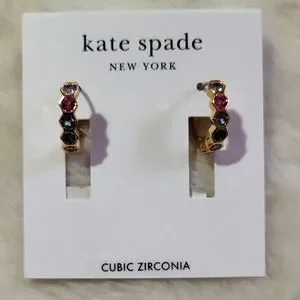Kate Spade Gold Hoop Earrings with Multicolor Stones