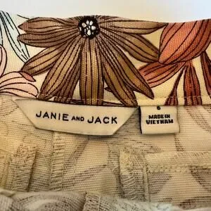 Size 6, Janie and Jack, floral canvas shorts. Pure cotton canvas with button details and pockets. Hidden side zip. Front pockets. adjustable waistband. No flaws, excellent condition, look new.