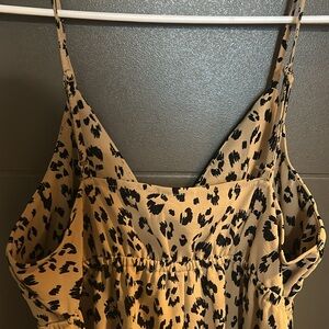 A New Day Tan and Black Leopard Print Spaghetti Strap Sundress
