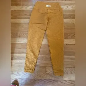 Experience the perfect blend of style and comfort with these Booty by Brabants leggings, featuring a striking yellow and gold hue. The honeycomb texture adds a unique flair, while the stretchy fabric ensures a snug, form-fitting silhouette ideal for athletic activities. These full-length leggings are designed to enhance your workout wardrobe with their vibrant color and distinctive pattern.