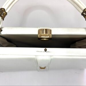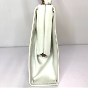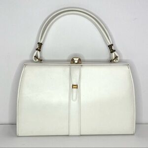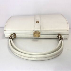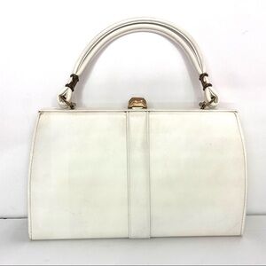 Vintage Madwed White Leather Purse Frame Doctor Bag Gold Tone Metal Closure.