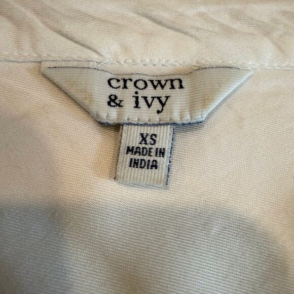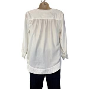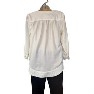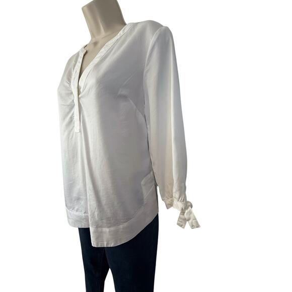 Crown & Ivy White Long Sleeve Pop Over Top Button V Neck Loose Flattering Fit