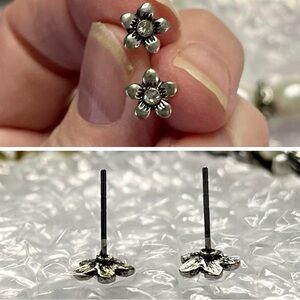 Flower studs, black detail around rhinestone center. Lost package -never used- Brand unknown