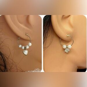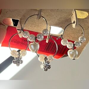 Petite dangle 4 faux pearl and 1 faux pearl shaped like a heart in the center, 3/4” dangle - never used- package not marked- brand unknown.