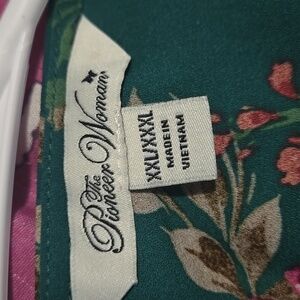 The Pioneer Woman Green & Burgandy Floral Open Front Overshirt