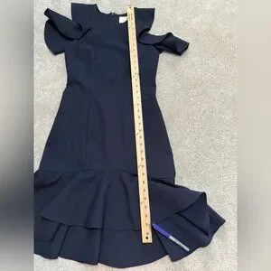 Cinq a Sept Elegant Navy Dress with Ruffle Detailing | size 4 | EUC